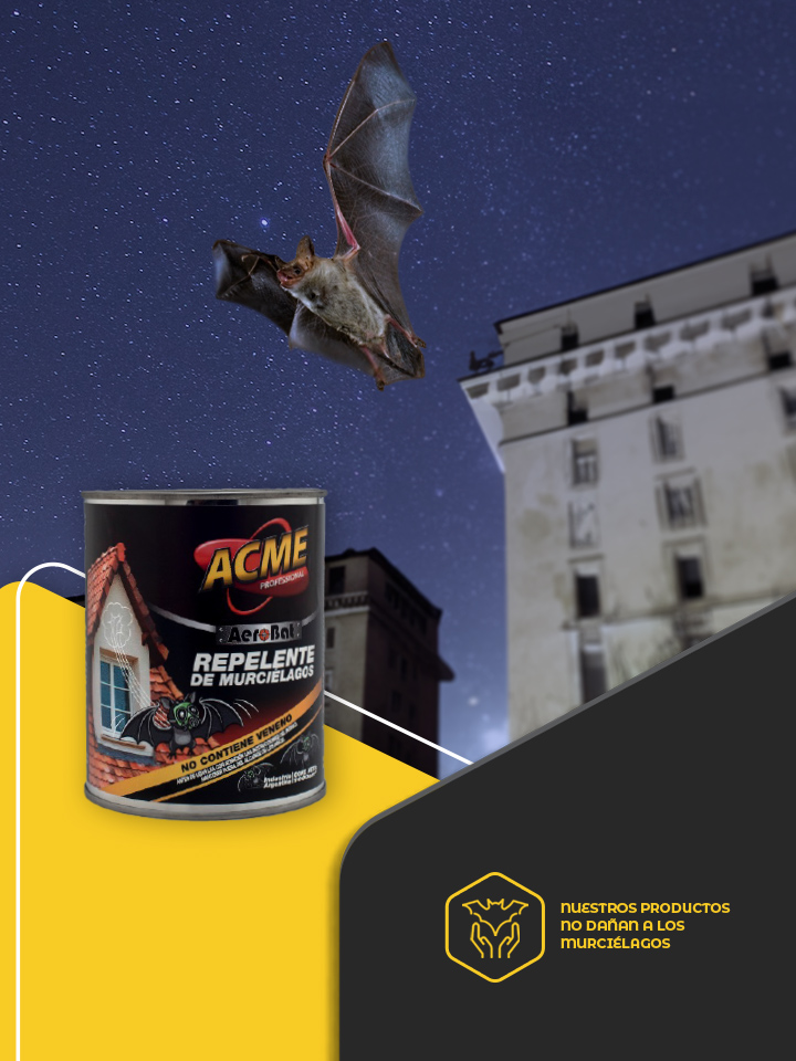 Aerobat Es ideal para repeler murciélagos presentes en altillos, ventanas, aleros, entretechos o cualquier otro sitio donde se observe la presencia de estos animales. Aerobat permite repelerlos de forma muy práctica y segura, sin necesidad de lastimarlos, teniendo en cuenta que los murciélagos que son animales protegidos por la Ley de Fauna.
