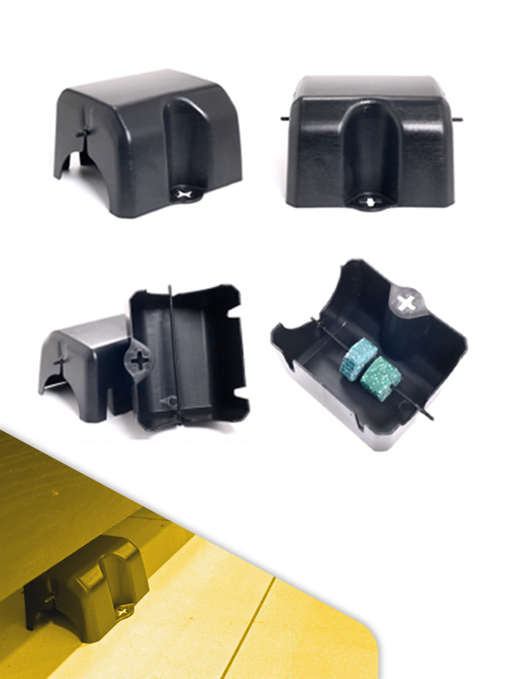Chau Caño es una estación cebadera para albergar bloques rodenticidas exclusivamente. A simple vista su formato es rectangular, pero cada punto de la misma fue diseñada de forma estratégica, basada en el comportamiento de los roedores.