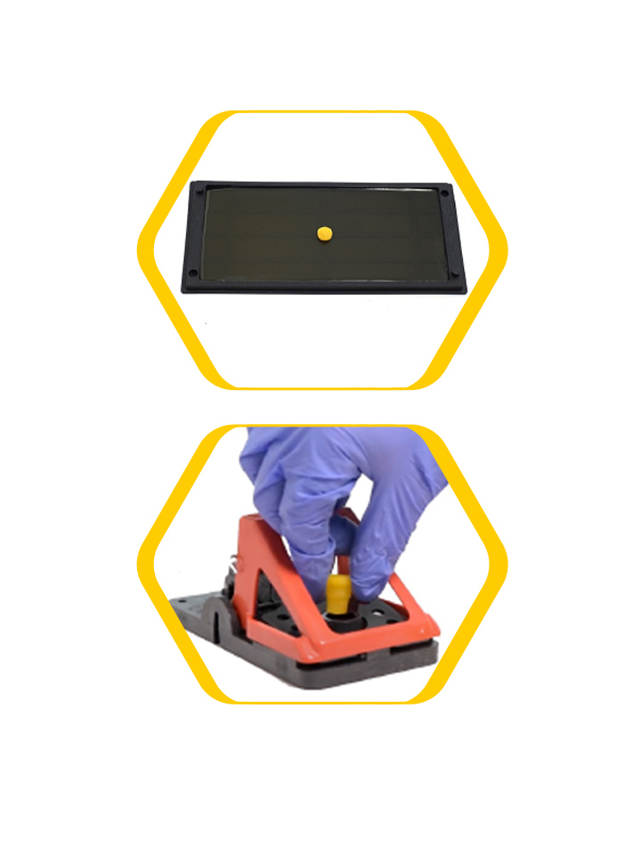 El formato de hongo esta especialmente diseñado para que los roedores empujen el lure hacia los laterales y que el atrape sea 100% efectivo.